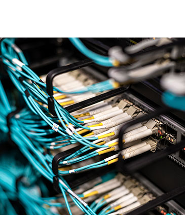 Instalación de redes cableadas, fibra óptica, racks y conectividad WiFi profesional.